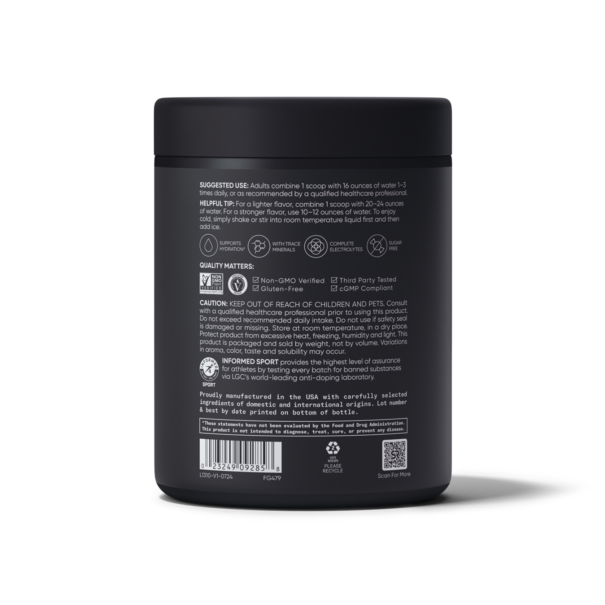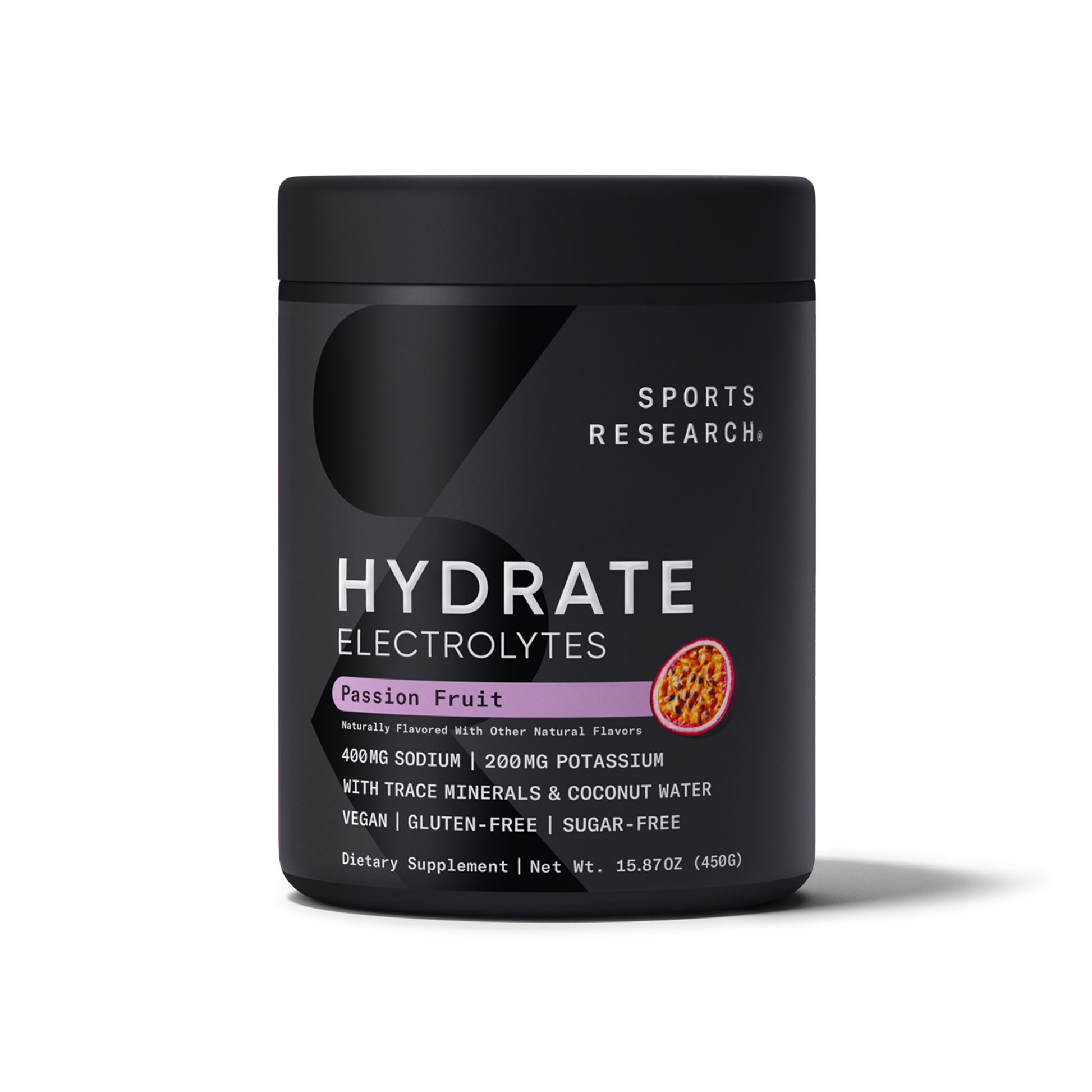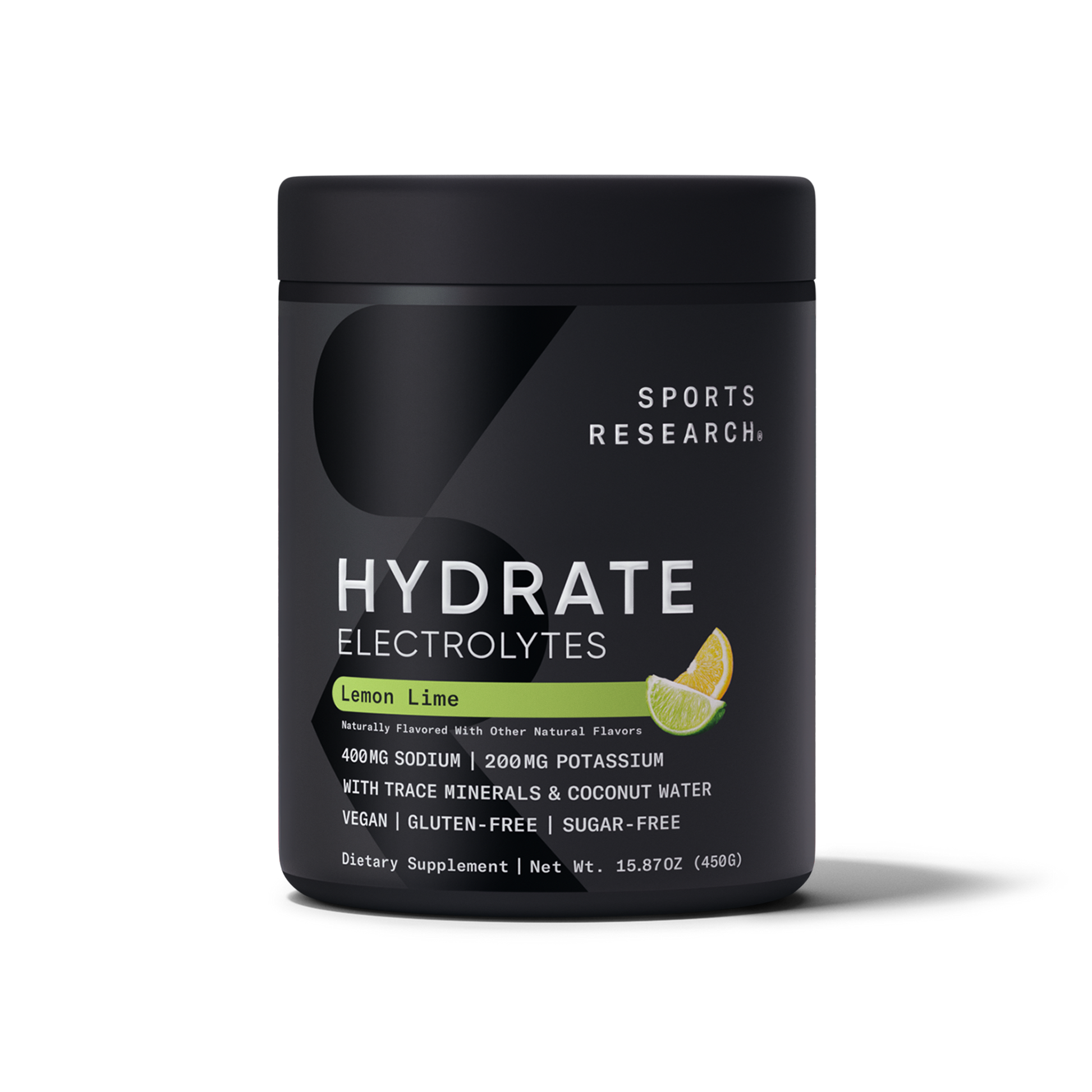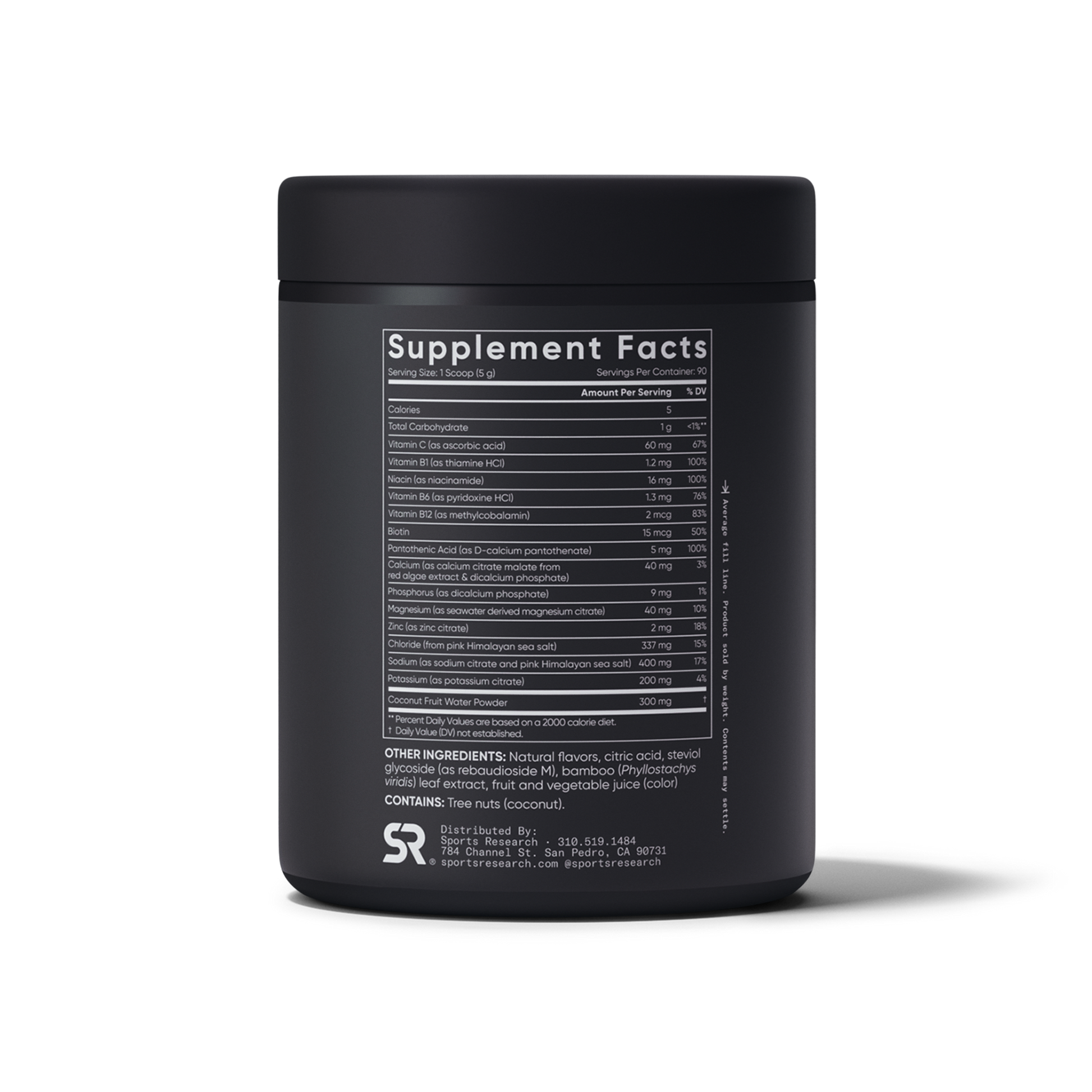 The Sports Research Hydrate Electrolytes Jar offers our signature delicious hydrate electrolytes—now even bigger and better! Our formula is sugar-free and flavorful, offering 400 mg of Sodium and 200 mg of Potassium—along with over 65 trace minerals, seven essential vitamins, and Coconut Fruit Water Powder —per serving to support daily hydration. Embrace the Sport of Life with electrolytes and a flavor that matches your vibe.